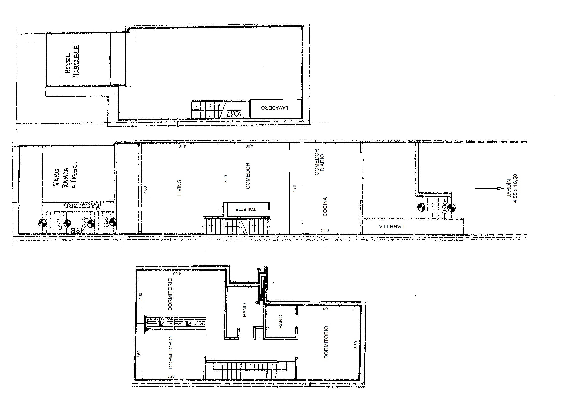 Dos baños completos y toilette. Cómodo, lavadero y baño de servicio. Garage para 2 autos y espacio descubierto para un tercero.